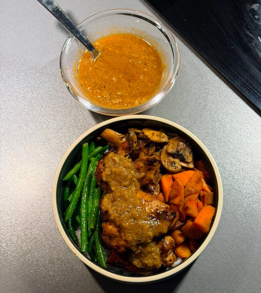 - The Bowl: Serve over fluffy white rice with a side of stir-fry of veggies like beans, mushrooms, and carrots and sauce made from the leftover marinade.