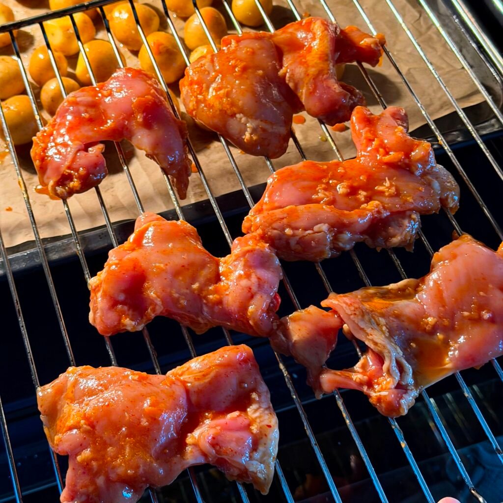 Lay the chicken on the rack. Roast for 15–20 minutes, flipping halfway through. Brush any remaining marinade over the chicken during the flip for an extra sticky glaze.